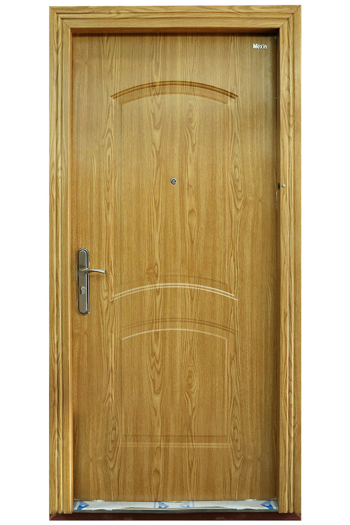 Material 1mm Galvanized Steel Sheet for Door, 2mm Steel sheet for Door Frame, PVC Film Coated, Reinforced Hinges, 7 Keys & key imprint