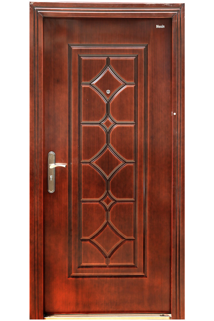 Material 1mm Galvanized Steel Sheet for Door, 2mm Steel sheet for Door Frame, PVC Film Coated, Reinforced Hinges, 7 Keys & key imprint